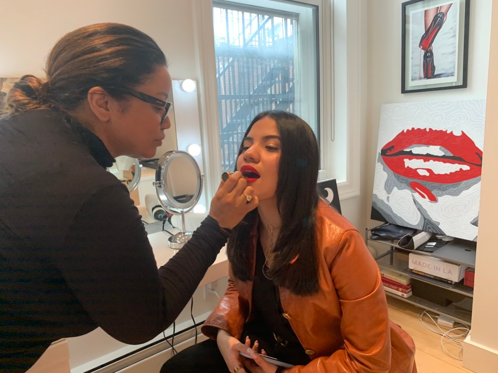 Elsie applying her signature red lip onto the lovely, Vanessa. Fun fact: Vanessa’s outfit was entirely snagged from my mom’s closet!