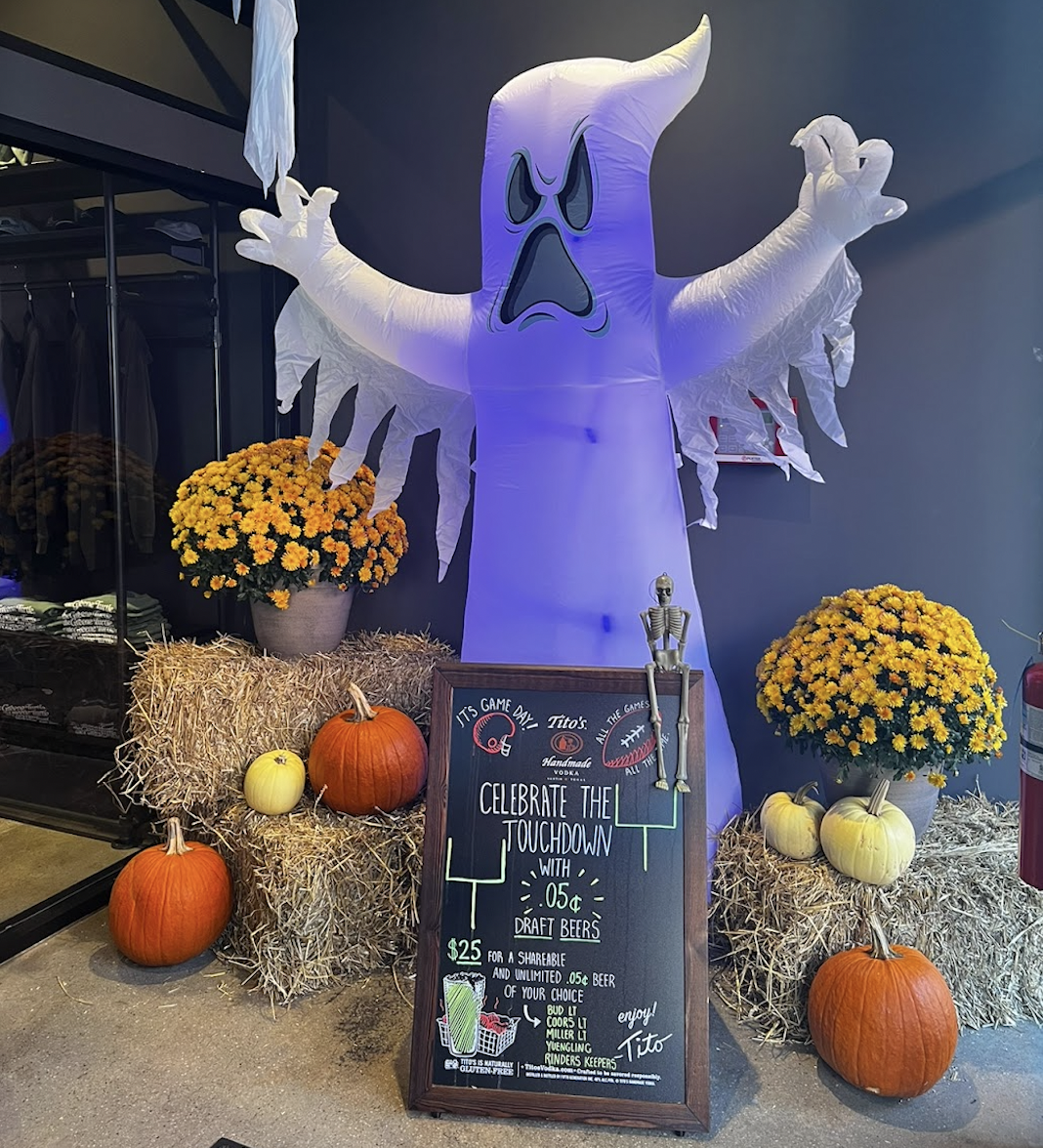 AFTER: This took me 2 days to create from concept to execution. I wanted to welcome the Halloween vibes with bright colors, an inflatable, and keeping it fun for the college kids to snap selfies with.