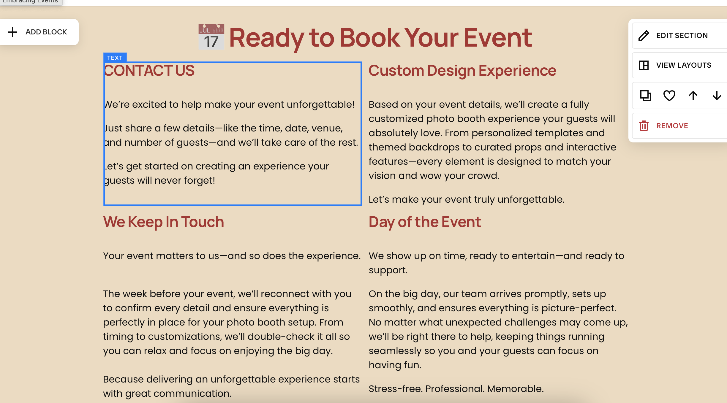Recently, one of my clients decided it was time for a refresh, not just in their services but in how their brand shows up. Embracing Events, originally launched over a decade ago as an event planning side hustle, has always been fueled by passion and creativity. Now, the business is evolving to focus exclusively on photo booth rentals.